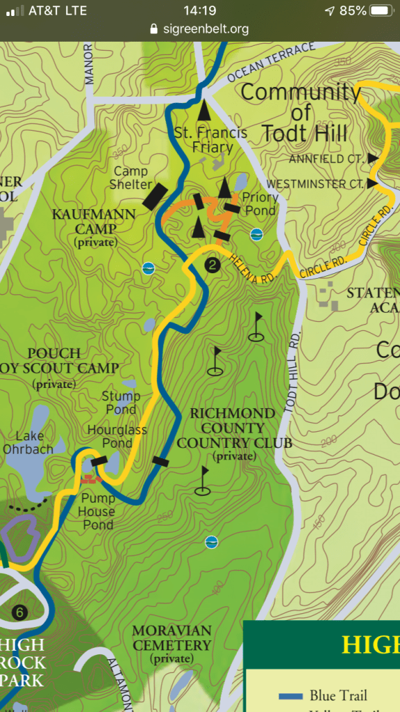 See all that green stuff in the middle? That’s the Greenbelt, an inadvertent gift from none other than Robert Moses, that enemy of open green spaces. He planned a parkway right through that green north-south belt, the Richmond Parkway. It would have run from the Staten Island expressway in a southwest direction. And it would have run through and destroyed hundreds of acres of virgin forest. But that was no obstacle to Moses; he usually got what he wanted.