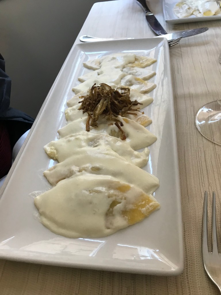 And my lunch companions had this pasta, olive leaf-shaped packets of artichoke cream.