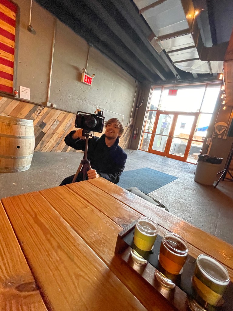 Ma dove? Mi sono chiesto e dopo un po’ ho deciso di andare al mio birrificio locale preferito, Flagship. Ha una grande stanza, una buona birra e tavoli da picnic ben distanziati. Il barista Mike, incuriosito da quello che stavamo facendo, ha illuminato i punti vicino a noi e ci ha dato birra in casa. Divertentemente, una dei loro prodotti è un Pilsener all’italiana chiamato Birra Locale, destinato a imitare birre italiane come Peroni e Moretti. Lo fa? Marco dice che è più amaro di quelli; gli italiani si stanno solo abituando alle birre luppolate come gli IPA.