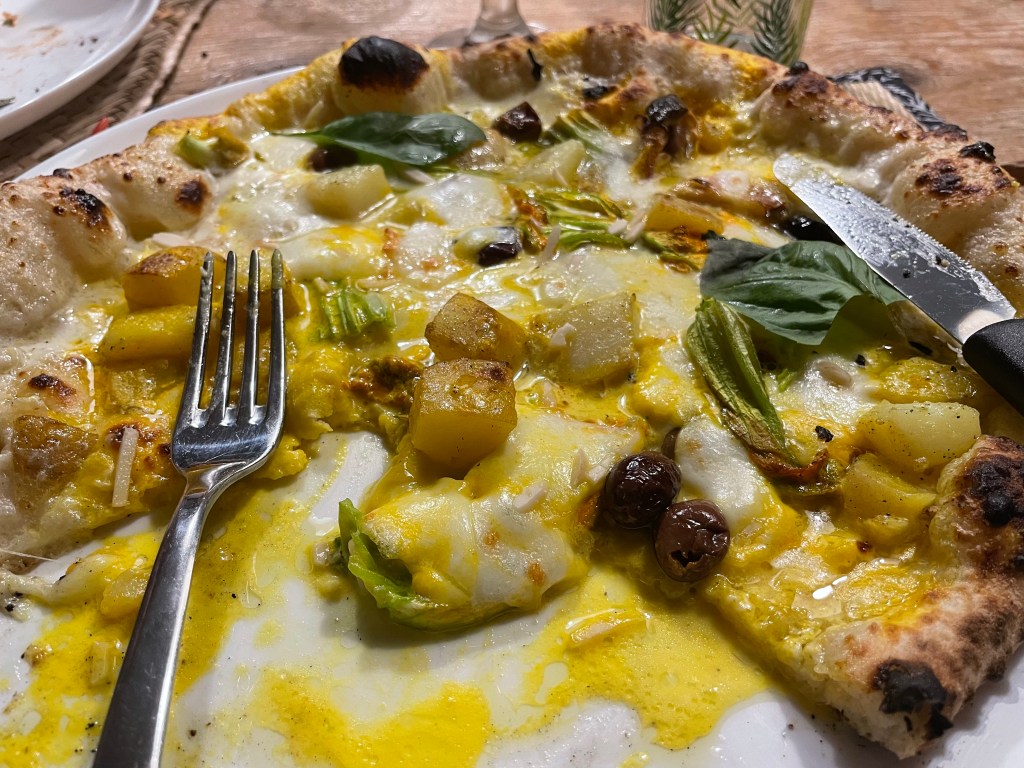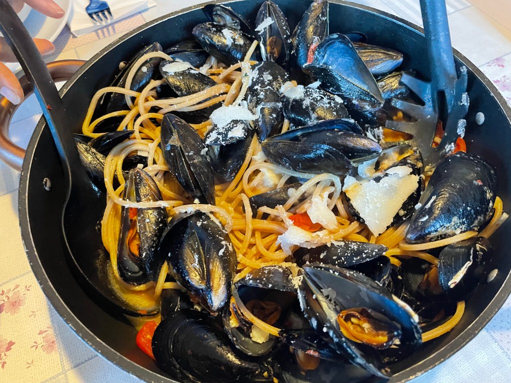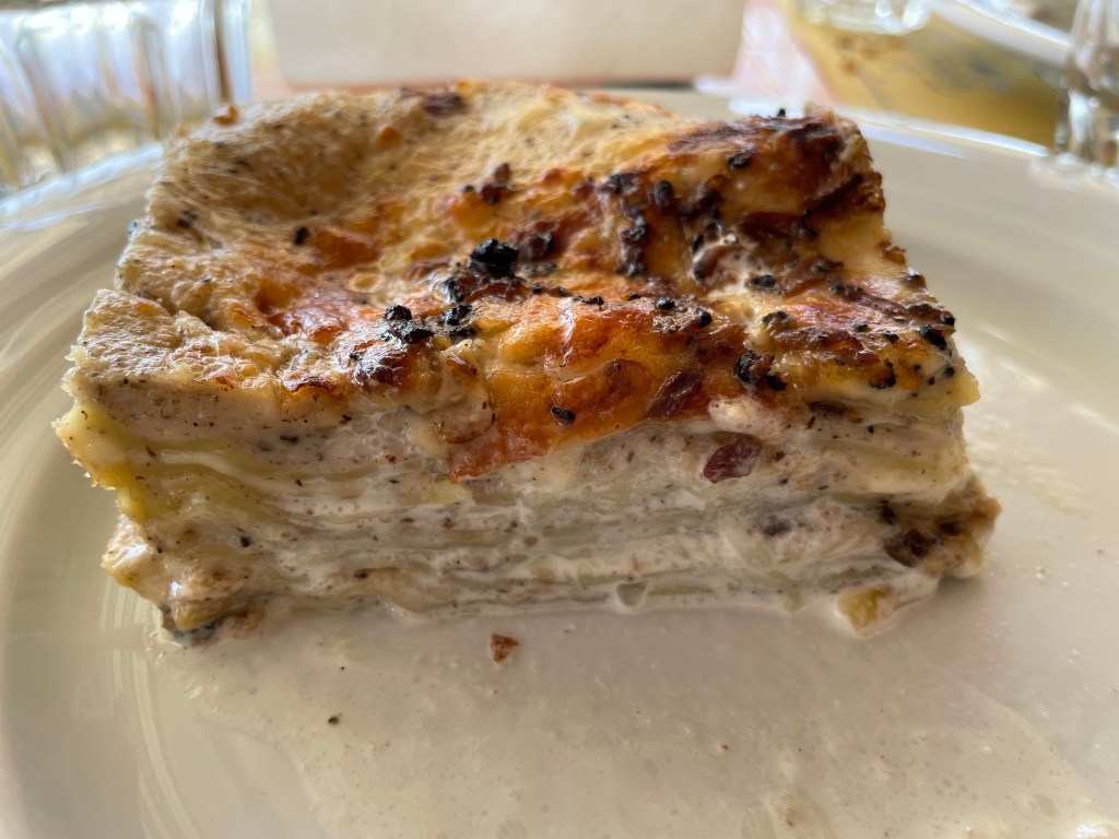 But more than the decent food and the beautiful view were the Taverna’s people. Our young waiter heard our accent and asked where we’re from. When we told him New York he smiled and said the Italian equivalent of “wow.” He kept watch over us the whole time, apologizing for a lag between courses because a large party had the kitchen in caos. The owner came by to chat, and we told him that it was good to be back. “We’ve been here since 2019,” he said. We replied that with Covid, etc., it was impossible to come. No, we said, we were patrons of the original Taverna, and he shot us a big smile.