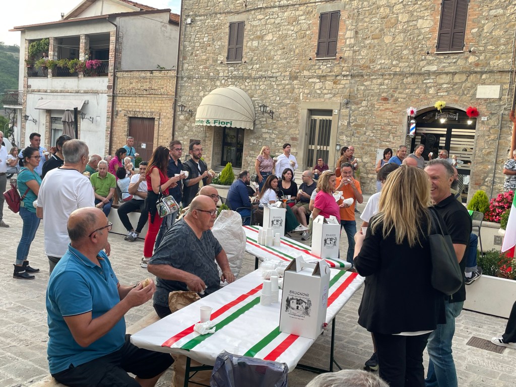 After the Covid shutdown, the region came alive this year. We’ve been to a few. The first was for the food, in Ripa, two towns down the main road here. The town itself is a tiny hamlet, with a circular historic center, and various memorials to Gino Bartoli. He was a heroic figure, a Tour de France bicyclist who smuggled citizenship documents for Jews during World War II by stuffing them in his bike’s tubes and delivering them. Ripa holds a truffle sagra, and the food’s pretty good if you’re a fan of the underground fungus. (We are; Ripa sagra shown below.)