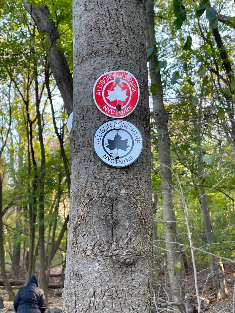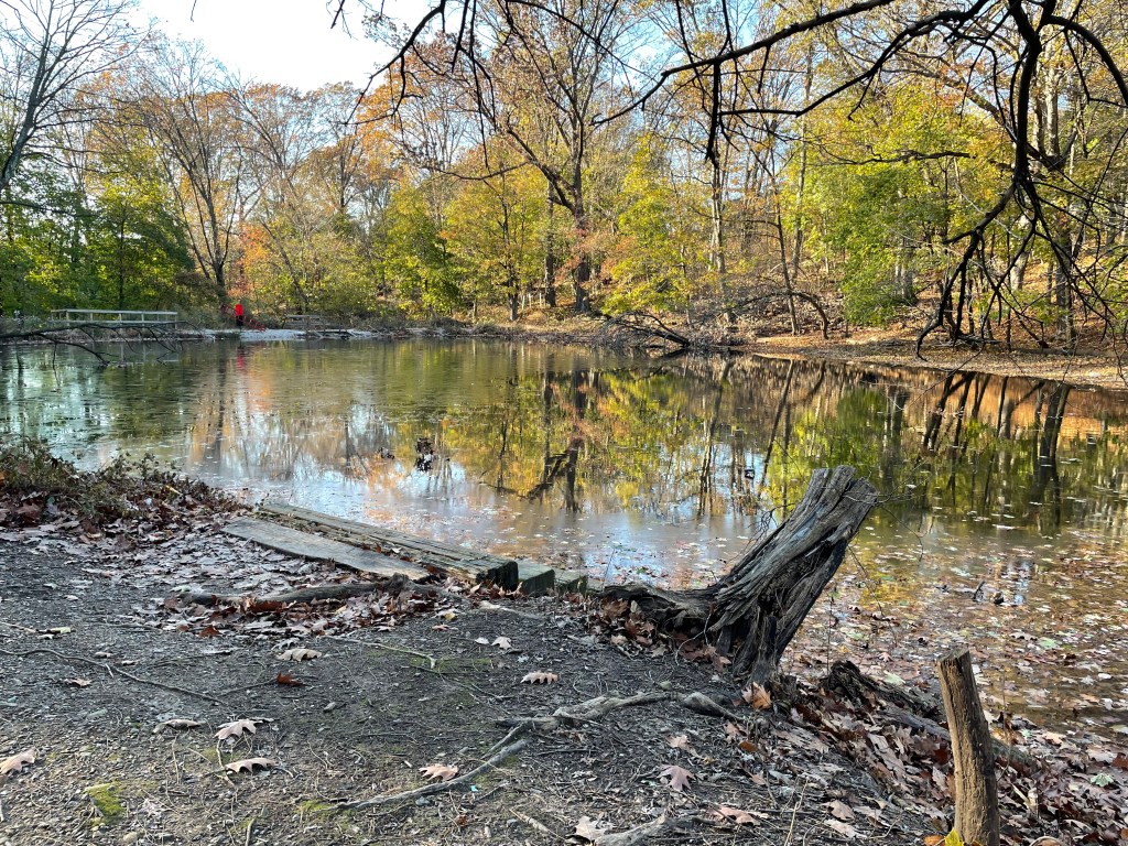 Today we went for a hike. Being a little lazy and wanting to maximize the pup’s off leash (shhh!) time, we drove to Allison Pond down the hill. There’s a pond, no surprise. But behind it are acres of woods. The pond was named after the daughter of George A. Outerbridge, an engineer who owned the property and designed the Outerbridge Crossing that connects Staten Island with Perth Amboy, New Jersey. One of the many Staten Island oddities is the bridge’s name. Looking at a map you might think that the bridge is so named because it’s out there, near the southern tip of Staten Island and, really, New York State. But no. It was named after its designer, Outerbridge, and instead of calling it the Outerbridge Bridge they had to use the word “Crossing,” a word that about 10-15 years ago came into vogue in the names of shopping malls.
