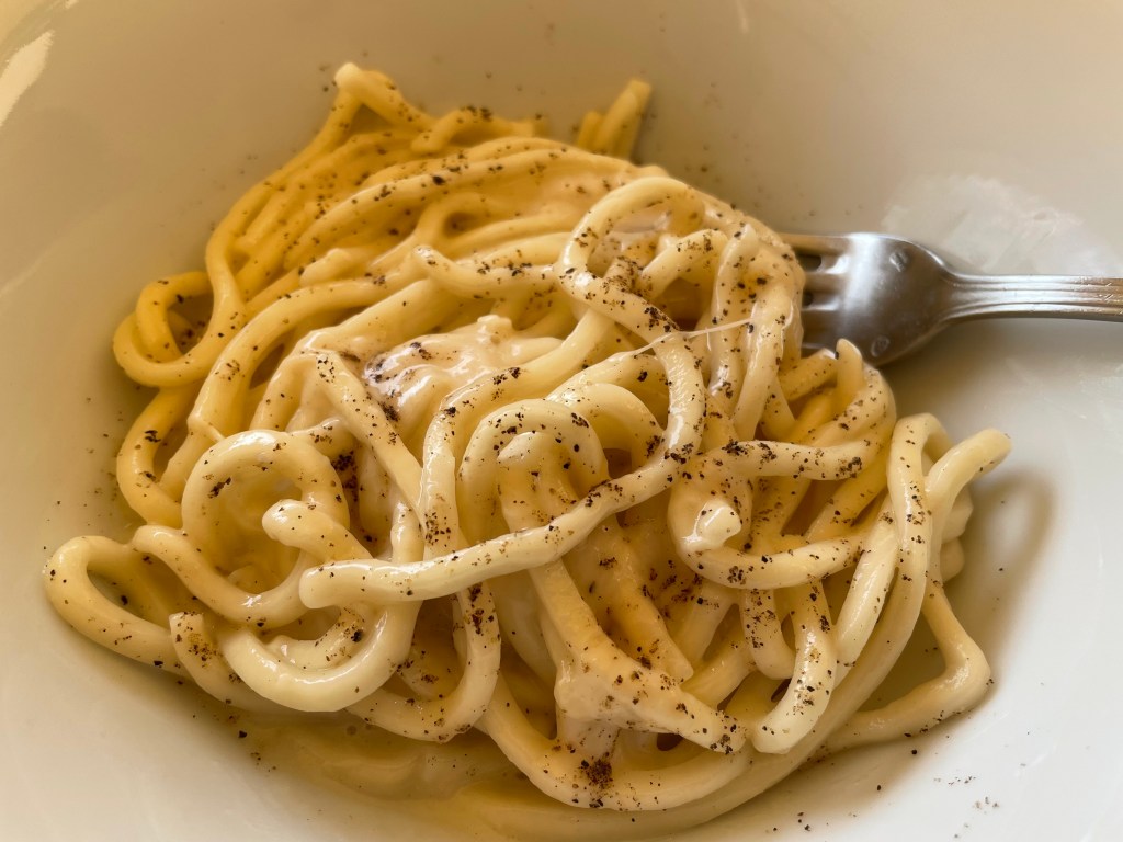 And have you ever had the experience of having a shop, a restaurant, a, I don’t know, a shrine nearby, and you tell yourself you’ve got to go there but you always forget or take it for granted that it’ll be there? Such was the case with the pretty recent addition to our town, Bottiglieria Barbarossa, a terrific enoteca right in the historic center. It opened about a year ago, and it’s a great place to try out local wines and artisanal gins and the like. And the owner Massimiliano is really passionate about his wares and the industry in general. We had a long chat about “natural” wines (he’s not a fan; I’m inclined to agree), the sacrifices restaurant owners make and our careers and life trajectories. The place has the additional benefit of big windows out onto the piazza so you can see the street action without the town’s resident old dudes staring back at you.
